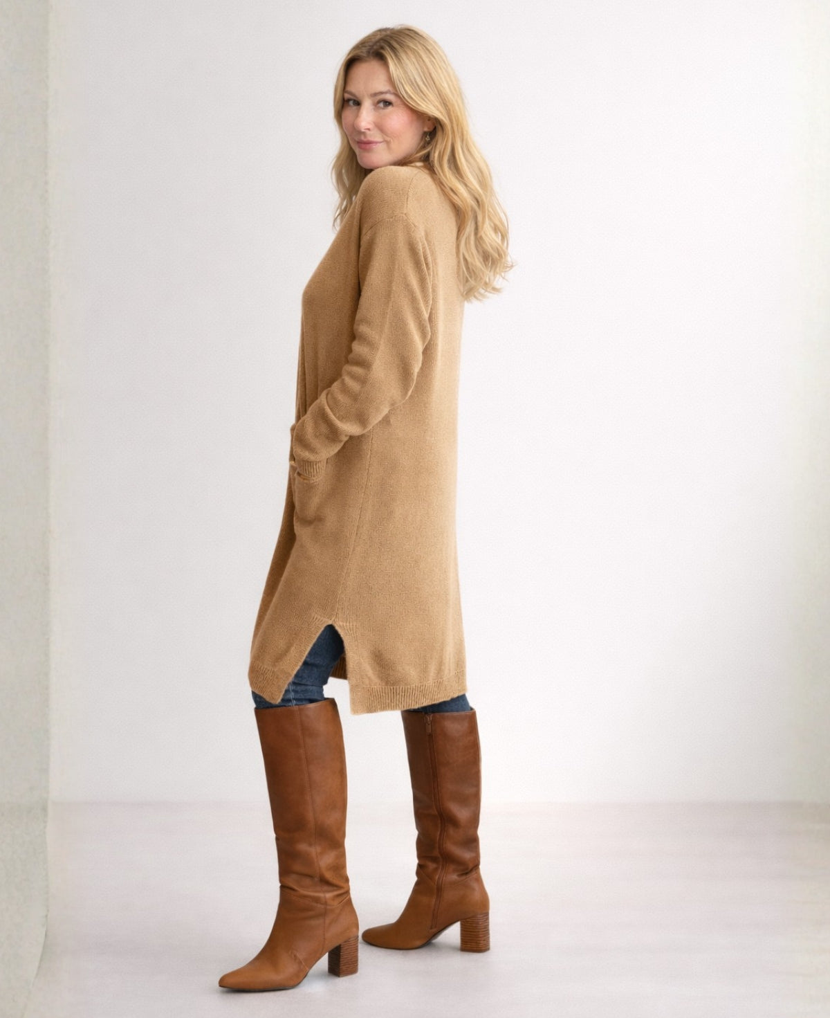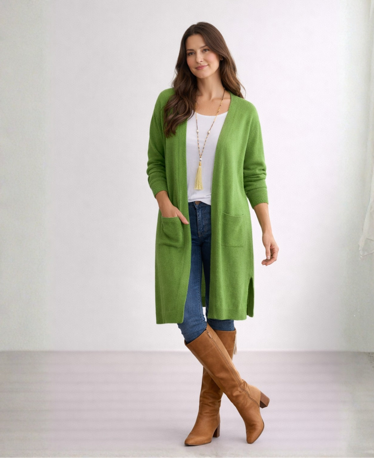 It’s one of those pieces you just throw on and feel good in straight away. Soft on the skin, not heavy, and easy to style without thinking too much. It adds warmth without feeling bulky and works with almost everything you already own. The kind of cardigan you keep reaching for because it simply fits into real life.